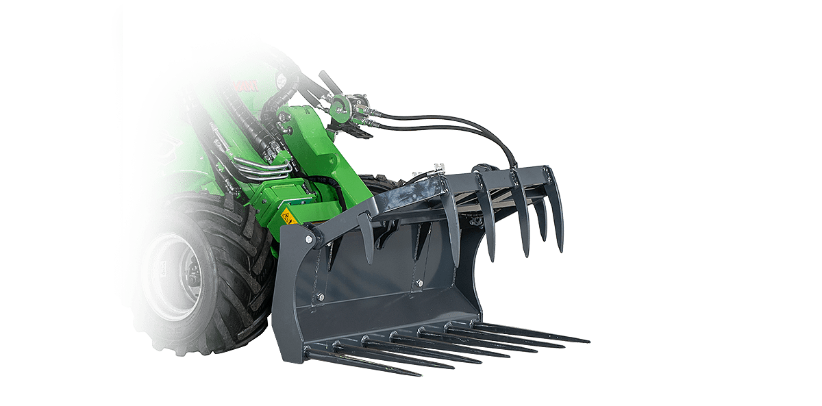 Visuose Avant krautuvų modeliuose galima montuoti tvirtą aukšto išvertimo kaušą su galingu hidrauliniu cilindru. Stiprūs griebtuvo ašmenys lengvai įsiskverbia į visų tipų pašarus. Šakės turi keičiamus apatinius dantis iš armuoto plieno. Griebtuvas pakyla į vertikalią padėtį ir tai kartu su galingu cilindru gali lengvai sugriebti.